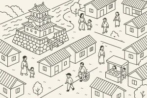 もう少し掘り下げると、たとえば「城下町」がどうやって発展していったか(=城の常設化の流れ)についてはこちらから▼